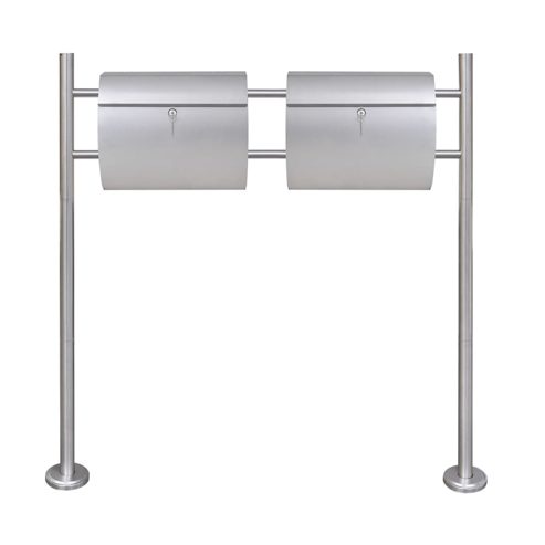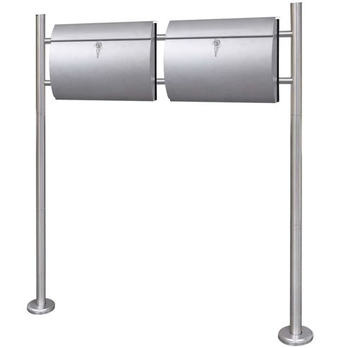 Doppelter Briefkasten aus Edelstahl mit Ständer