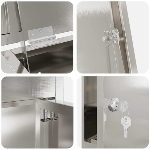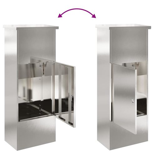 Diese Outdoor-Paketdropbox ist eine moderne Lösung, um Pakete sicher an jedem Außenstandort zu empfangen, und kombiniert Funktionalität mit Stil. Ihre klaren, geometrischen Linien verkörpern Einfachheit und sorgen gleichzeitig mit ihrem abschließbaren Mechanismus für Sicherheit. Entworfen für den Wohn- oder Geschäftsbereich bietet sie eine praktische Möglichkeit, Pakete Tag und Nacht zu empfangen, wodurch das Risiko von Diebstahl und Verlegung verringert wird. Dieses Stück ist vielseitig, mit einer eleganten Ästhetik, die sich in verschiedene Architekturstile in Gärten und auf Terrassen einfügt. Robuste Konstruktion: Hergestellt aus wasserabweisenden Materialien, hält dieser Paketbriefkasten den Witterungen stand und sorgt dafür, dass die Pakete trocken und unversehrt bleiben. Speziell für den Außenbereich entworfen, weist das Material Feuchtigkeit ab und bietet dauerhaften Schutz und erhält seine Qualität und sein Aussehen durch wechselnde Jahreszeiten. Sichere Paketlagerung: Mit einem robusten abschließbaren Mechanismus bietet dieser Briefkasten Seelenfrieden, indem er Pakete sicher aufbewahrt, bis du sie abholst. Das Schloss ist einfach zu bedienen und bietet eine zusätzliche Sicherheitsebene gegen unbefugten Zugriff, wodurch es sich für den Einsatz in offenen Umgebungen eignet. Effiziente Paketzugänglichkeit: Sein benutzerfreundliches Design ermöglicht ein praktisches Abgeben und Abrufen von Paketen, wodurch die Benutzerfreundlichkeit für verschiedene Paketgrößen gewährleistet ist. Das intuitive Zugangstürdesign ist für häufige Nutzung geeignet und sorgt dafür, dass Kuriere und Empfänger minimalen Aufwand haben. Anpassungsfähiger Stil: Mit einem minimalistischem Stil, der durch moderne Linien geprägt ist, fügt sich dieser Paketbriefkasten mühelos in die meisten Außenbereiche ein. Seine Vielseitigkeit erlaubt es ihm, eine breite Palette von Dekoren zu ergänzen und verleiht Mehrfamilienhäusern, Wohnungen oder Gartenbereichen einen Hauch von Eleganz. Sicherheit zuerst bei der Montage: Die Installation erfordert eine sichere Befestigung an einer Wand, wie beschrieben, um ein Umkippen zu verhindern und Stabilität zu gewährleisten. Dieser Schritt sorgt dafür, dass die Paketdropbox sicher an ihrem Platz bleibt und langfristigen zuverlässigen Gebrauch und Sicherheit bietet. Die Einhaltung der Montage- und Pflegeanweisungen erhält die Integrität der Box im Laufe der Zeit. ** Farbe: Schwarz ** Material: Edelstahl ** Beenden: Brushed ** Gesamtabmessungen: 44.5 x 29 x 110.5 cm (W x L x H) ** Innen- / außenbereich: Outdoor only ** Lieferung: ** 1 x Paketdrop-Box ** Anzahl der elemente: 1