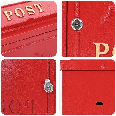 Dieser Vintage-Wandbriefkasten hat einen einzigartigen Charme und ist super praktisch für deinen Garten oder deine Terrasse. Der retro Stil verleiht deiner Außendekoration eine zeitlose Note und er ist sowohl ein Hingucker als auch nützlich für die Briefsammlung. Das geschwungene Design ergänzt den Vintage-Style, während die robuste Bauweise dafür sorgt, dass du lange Freude daran hast. Materialzusammensetzung: Aus strapazierfähigem Gussaluminium gefertigt, bietet dieser Briefkasten Langlebigkeit und ist resistent gegen Wetterbedingungen. Perfekt für den ständigen Außeneinsatz, bleibt der Kasten auch bei schlechtem Wetter top in Schuss und bietet Nutzern, die auf Ästhetik und Leistung Wert legen, Sicherheit. Enthaltene Komponenten: Der Briefkasten kommt mit einem sicheren Cam-Lock-System, das deine Briefe und Pakete sicher aufbewahrt, bis du sie abholst. Mit der eleganten Aluminiumtür hast du einen einfachen Zugang und das Design im Vintage-Look wird damit aufgewertet. Alle notwendigen Teile sind dabei, sodass du ihn sofort nutzen kannst. Wasserdichtes Design: Dieser Briefkasten ist mit einem wasserabweisenden Material ausgestattet, damit deine Post bei Regen oder Schnee trocken bleibt. Der durchdachte Aufbau schützt die Inhalte vor Wasser, was ihn in jedem Wetter unentbehrlich macht. Vielseitige Anwendung: Sein klassisches Design passt in viele Umgebungen, egal ob in einem Vorstadtgarten oder einem rustikalen Landhaus. Der Briefkasten wertet jeden Außenbereich mit seinem Vintage-Charme auf und fügt deinem Grundstück Klasse und Funktionalität hinzu. Einfache Wartung: Die Pflege dieses Briefkastens ist ganz unkompliziert. Ein schnelles Abwischen mit einem feuchten Tuch entfernt Staub und Schmutz, sodass er immer sauber und einladend aussieht. So bleibt die Schönheit und Funktionalität ohne großen Aufwand erhalten. ** Farbe: Rot ** Material: Gussaluminium ** Gesamtabmessungen: 29 x 13 x 41 cm (L x B x H) ** Gewicht: 2,75 kg ** Wasserdichte Materialien ** mit 1 Schloss ** mit 1 Aluminiumtür Tür ** Innen- / Außenbereich: Nur für den Außenbereich ** Lieferumfang: ** 1 x Wandmontierter Briefkasten ** Montage erforderlich: Ja