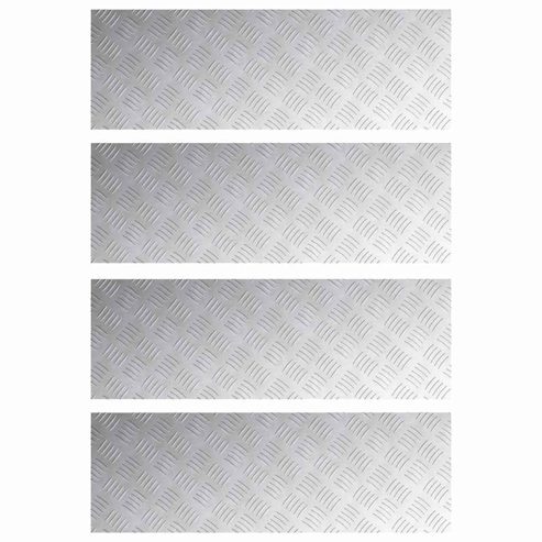 Die Aluminium Checker Plates bringen frischen Wind in deine Treppen. Sie bieten Schutz und modernen Stil für jede Umgebung – ob gemütliche Wohnung oder belebtes Büro. Mit klaren Linien und minimalistischem Design werten sie jeden Raum auf. Wenn du praktische und stylische Elemente suchst, vereinen diese Stufen schickes Aussehen mit Funktionalität. Aluminium-Material Diese Treppenstufen sind aus starkem Aluminium gefertigt, was sie super widerstandsfähig gegen Abnutzung und wetterliche Einflüsse macht. Aluminium rostet nicht und hält lange, wodurch deine Treppe sowohl gut aussieht als auch geschützt ist. Rutschfeste Oberfläche Die rutschfeste Basis dieser Stufen verringert das Risiko von Ausrutschern erheblich. Mit dieser Anti-Rutsch-Funktion fühlen sich alle, vor allem Kinder und ältere Menschen, sicherer. Egal ob drinnen oder draußen – diese Stufen bieten Sicherheit bei jedem Schritt. Wasserfest Der wasserfeste Charakter von Aluminium macht die Stufen perfekt für jede Umgebung. Ob bei Regen oder Sonnenschein, sie behalten ihre Form und sehen gut aus. Außerdem schützen sie den Boden rund um deine Treppe vor Feuchtigkeit. Einfach zu reinigen Diese Checker Plates sind super pflegeleicht – ein kurzes Wischen mit einem feuchten Tuch reicht völlig aus. Keine speziellen Reinigungsmittel nötig, was perfekt für den hektischen Alltag ist. Sie bleiben sauber und stylish, ohne viel Aufwand. Vielseitigkeit Ob für Treppen im Haus oder Eingänge von Geschäften, diese Stufen bringen Rutschfestigkeit und Stil mit wenig Aufwand. Ihr flexibles Design passt zu verschiedenen Bodenbelägen und bietet zusätzlichen Schutz. ** Farbe: Silber ** Material: Aluminium ** Gesamtabmessungen: 90 x 30 cm (L x B) ** Gewicht: 4.5 kg ** Innen- / außenbereich: Innen/außen ** Lieferung: ** 4 x Riffelblech ** Anzahl der elemente: 4