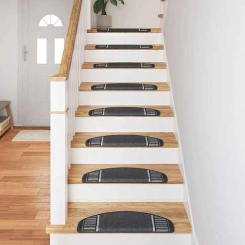 Diese Stufenmatten bieten eine coole und praktische Lösung, um deine Treppen zu schützen. Hergestellt aus 100 % Polypropylen, sind sie strapazierfähig und reduzieren Geräusche auf rutschigen Holzstufen. Ihr modernes Design fügt sich perfekt in jede zeitgemäße Flur- oder Wohnzimmerdekoration ein und sorgt für Sicherheit, indem es Stürze verhindert und gleichzeitig das Aussehen deines Zuhauses aufwertet. Materialien: Hergestellt aus 100 % Polypropylen, sind diese Stufenmatten robust und widerstandsfähig für den Alltag. Das Material ist ideal, um Geräusche zu dämpfen, die in belebten Haushalten stören können. Besonders in Haushalten mit Kindern oder viel Fußverkehr schaffen sie eine ruhigere Umgebung. Geräuschdämpfend und Rutschfest: Mit schallabsorbierender Oberfläche und rutschfestem Design bieten diese Matten sicheren Halt auf deinen Treppen. Das ist gerade in städtischen Wohnungen wichtig, wo Lärm den Alltag stören kann. Die rutschfeste Rückseite verhindert, dass die Matten verrutschen, wodurch das Risiko von Unfällen sinkt. Größe und Passform: Jede Matte misst 65 x 21 x 4 cm und ist so designed, dass sie perfekt auf die meisten Standardtreppen passt. Die Dicke sorgt für zusätzlichen Komfort, und die einfache Installation braucht keine speziellen Werkzeuge. Empfohlene Räume: Perfekt für Flure und Wohnzimmer erhöhen diese Matten die Sicherheit und den Charme deiner Innentreppen. Ihr schlichter Stil passt zu verschiedenen Wohnstilen und integriert sich gut in dein Zuhause. Ihre robusten Eigenschaften machen sie zu einer super Wahl für alle Altersgruppen. Einfach zu pflegen: Halte die Matten mit regelmäßigem Staubsaugen frisch. Das macht es einfach, sie von Staub und Allergenen zu befreien. Ihre pflegeleichte Art sorgt dafür, dass sie ein unkomplizierter Teil deines Hauses bleiben und dir den ganzen Tag über Komfort bieten. ** Farbe: Anthrazit ** Material: 100% Polypropylen ** Gesamtabmessungen: 65 x 21 x 4 cm (L x B x H) ** Pile Height: 3, 5 mm ** Dicke: 5, 5 mm ** Total Weight: 1200 g/m² ** Rechtwinklig ** Schallabsorbierend ** Rutschfeste Gestaltung ** Selbstklebende Rückseite ** Einfach mit Staubsauger oder feuchtem Tuch zu reinigen ** Maschinenwaschbar ** Innen- / Außenbereich: Nur für den Innenbereich ** Lieferumfang: ** 15 x Treppenmatte