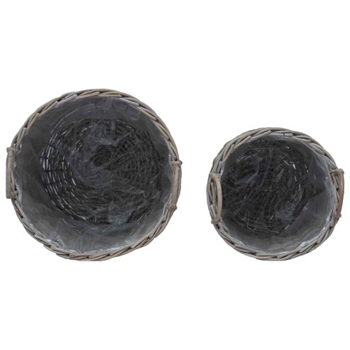 vidaXL Blumentopf Körbchen mit Speicher 2 pcs Grau Lacak Rattan