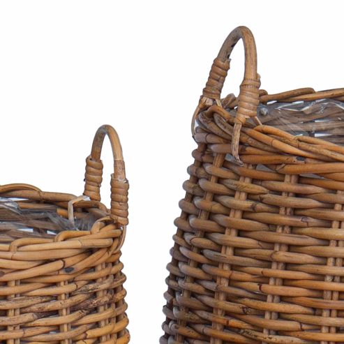 vidaXL Blumentopf Körbchen mit Speicher 2 pcs Braun Lacak Rattan