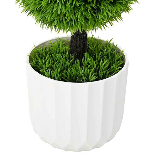 Die künstliche Topiary-Kiefer vereint natürliche Schönheit mit dem Komfort des modernen Lebens. Wenn du nach einem stylischen und pflegeleichten Akzent für dein Zuhause oder deinen Garten suchst, ist diese künstliche Kiefer genau das Richtige. Ihr authentisches Design bringt das ländliche Gefühl von Landhaus-Dekor und sorgt für eine warme, gemütliche Atmosphäre. Egal, ob sie im Flur steht oder eine Terrasse aufpeppt, dieses grüne Schmuckstück gibt jedem Raum einen lebendigen Look. Hochwertige Materialien: Diese künstliche Topiary-Kiefer besteht aus robustem Kunststoff, der sowohl für drinnen als auch für draußen geeignet ist. Ihre natürliche Widerstandsfähigkeit hält ihr Aussehen frisch und sorgt dafür, dass sie über die Jahre ein tolles Deko-Element bleibt. Keine Montage nötig: Die Pflanze kommt fertig montiert, sodass du dir das Herumfummeln sparen kannst. Auspacken, hinstellen und sofort den frischen Look genießen, ohne die Pflege. Naturnahes Design: Die künstliche Kiefer hat eine realistische Form und Oberflächenstruktur, die echte Kiefern im Aussehen ähnelt. Sie bringt einen Hauch Natur in deine Deko und sorgt drinnen wie draußen für einen üppigen, organischen Flair. Ihr immergrüner Farbton schafft eine entspannte Stimmung und macht Räume warm und einladend. Flexibel für drinnen und draußen: Diese anpassungsfähige Pflanze passt in viele Locations – ob Wohnzimmer, Terrassen oder Gärten. Sie ist die perfekte Wahl, wenn du Grün ohne den Aufwand einer echten Pflanze möchtest. Sie ergänzt sowohl rustikale als auch moderne Einrichtungsstile und bietet viele Deko-Ideen. Pflegeleicht: Im Gegensatz zu echten Pflanzen braucht diese künstliche Topiary kein Wasser, keinen Schnitt und keine spezielle Pflege – ein einfaches Abstauben hin und wieder reicht, um sie gut aussehen zu lassen. Ideal für einen hektischen Alltag, damit du das tolle Aussehen von Grün genießen kannst, ohne viel Zeit oder Mühe investieren zu müssen. ** Farbe: Grün ** Material: Plastik ** Gesamtabmessungen: 24 x 24 x 90 cm (L x W x H) ** Gewicht: 4.45 kg ** Innen- / außenbereich: Indoor / outdoor ** Lieferung: ** 1 x Künstliche Pflanze ** Anzahl der elemente: 1