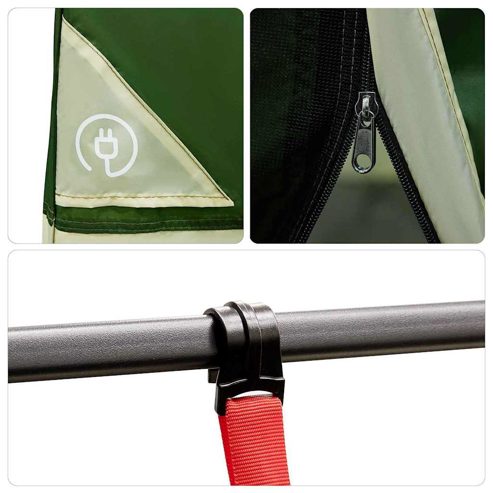 Dieses Outdoor-Camping-Zelt kombiniert Style mit Funktionalität und hat ein modernes Design, das zu jedem Abenteuer passt. Es ist für Familien gemacht und sieht toll aus, während es wirklich nützlich ist, was deine Zeit im Freien noch besser macht. Dank seiner soliden Bauweise und Vielseitigkeit bietet dir dieses Zelt einen zuverlässigen Platz zum Entspannen und schützt dich, sodass es perfekt in Gärten oder auf Terrassen für deine Sommerausflüge passt. Wasserdichtes Polyester Material – Aus 185T-Polyester mit PU-Beschichtung gefertigt, hält das Zelt Regen und Feuchtigkeit fern, damit du beim Camping trocken und bequem bleibst und dabei cool aussiehst! Sicherer Reißverschluss – Das Zelt hat einen praktischen Reißverschluss, der es sicher verschließt und einfach zu öffnen ist. Diese Funktion stellt sicher, dass dein Zelt gegen den Wind dicht ist und dich vor unerwartetem Regen schützt. Robuster Fiberglasrahmen – Das Zelt wird von einem stabilen Fiberglasrahmen unterstützt, der auch bei schlechtem Wetter durchhält. So behält dein Zelt seine Form und Stabilität bei jedem Ausflug. Atmungsaktives und windresistentes Design – Es bietet Schutz und Komfort mit atmungsaktiven Eigenschaften, die den Luftstrom im inneren ermöglichen. Zudem sorgt das windresistente Design dafür, dass es stabil und gemütlich bleibt, damit es drinnen angenehm bleibt. Kompakt und tragbar – Dieses Zelt kommt mit einer Tragetasche, die den Transport super einfach macht. Perfekt für jeden Outdoor-Fan, der gerne neue Orte entdeckt! ** Farbe: Grün ** Material: 185t polyester mit pu-beschichtung ** Gesamtabmessungen: 520 x 520 x 190 cm (L x W x H) ** mit Tragetasche ** Innen- / außenbereich: Outdoor only ** Lieferung: ** 1 x Zelt, 1 x Tragetasche ** Anzahl der elemente: 1 ** Versammlung erforderlich: Yes Achtung Halten Sie alle Flammen und Wärmequellen von diesem Produktgewebe fern.