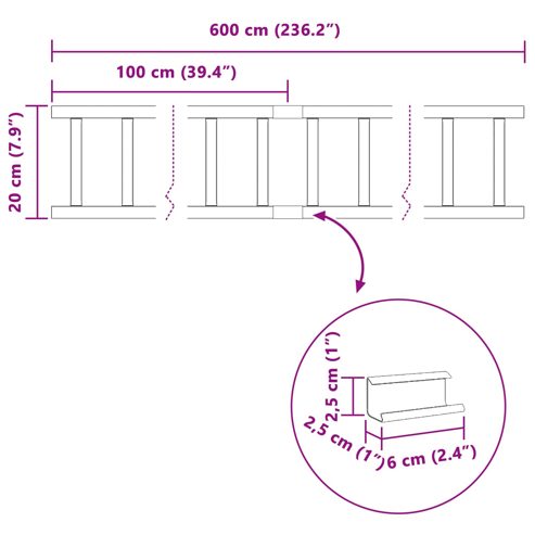 vidaXL Dachschneeschild Schwarz 600 x 2,5 x 20 cm Stahl