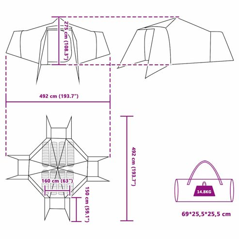 Das Tipi-Zelt für Camping-Retreats vereint Stil, Funktionalität und Robustheit und ist die perfekte Wahl für Outdoor-Enthusiasten, die nach einem flexiblen Camping-Setup suchen. Mit seinem geschmeidigen Gefühl und modernen Look mit klaren Linien und minimalem Aufwand lädt dich dieses Tipi-Zelt ein, die Natur zu genießen, ohne auf Komfort zu verzichten. Sein geräumiges Innere bietet viel Platz für Familien oder Gruppen und schafft eine warme Atmosphäre, die dich vor den Elementen schützt. Der wasserfeste und UV-beständige Taftstoff hält dich sicher und verspricht dir unvergessliche Nächte unter den Sternen. Es ist auch tragbar und einfach mitzunehmen, sodass du es schnell greifbar hast, egal wo du campen möchtest. Ob du neue Wege erkundest oder einfach nur entspannen möchtest, dieses Zelt ist der perfekte Begleiter. Wasserfester Taftstoff: Dieses Tipi-Zelt besteht aus robustem, wasserfestem Taft, der dich bei unerwarteten Regenschauern trocken hält. Die UV-beständige Eigenschaft schützt dich vor schädlichen Sonnenstrahlen, was dein Campingerlebnis noch besser macht. Der Stoff fühlt sich angenehm an und sieht in der Natur toll aus. Robuste Reißverschlussöffnung: Der zuverlässige Reißverschluss macht das Ein- und Aussteigen aus dem Zelt super einfach. Er hält lange, auch bei häufigem Gebrauch, und gibt dir die Sicherheit, dass du es sicher schließen kannst, um die Elemente und kleine Krabbeltiere draußen zu halten. Geräumiges Familien-Innenleben: Mit großzügigen Maßen von 492 x 492 x 275 cm ist dieses Zelt perfekt für Familientreffen oder Freundestreffen. Das Design, inspiriert von traditionellen Tipis, bietet einen zentralen Treffpunkt mit genug Platz für etwas Privatsphäre. Es lässt sich flexibel an dein Setup anpassen und sorgt dafür, dass alle bequem und glücklich sind. Tragbar und transportabel: Für einfache Reisen gedacht, kommt das Zelt mit einer eigenen Tragetasche, die die Lagerung und den Transport super einfach macht. Diese Tragbarkeit erlaubt es Camping-Liebhabern, die Natur überallhin mitzunehmen, egal, ob in die Natur oder einfach in den lokalen Park. Die mitgelieferten Erdnägel halten es stabil, egal wohin deine Abenteuer gehen. Praktische Pflege & Wartung: Damit das Zelt gut aussieht und lange hält, ist die Pflege ganz einfach: einfach an der Luft trocknen lassen, starke Bleichmittel vermeiden und beim Trocknen direktes Sonnenlicht meiden, um es in Topform zu halten. Ein bisschen TLC sorgt dafür, dass es bereit für dein nächstes Abenteuer ist. ** Farbe: Blau und grau ** Material: Stoff ** Beenden: Sonstige ** Gesamtabmessungen: 492 x 492 x 275 cm (L x B x H) ** Gewicht: 14.9 kg ** mit Tragetasche ** Innen- / außenbereich: Nur für draußen ** Lieferung: ** Zelt, Tragetasche, Erdnägel ** Anzahl der elemente: 1 ** Versammlung erforderlich: Ja Achtung Halten Sie alle Flammen und Wärmequellen von diesem Produktgewebe fern.