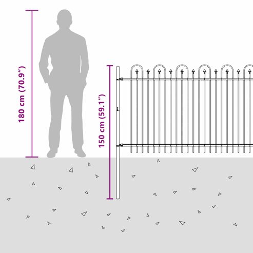 vidaXL Spitzenbogenzaun Schwarz 200 x 150 cm Pulverbeschichteter Stahl