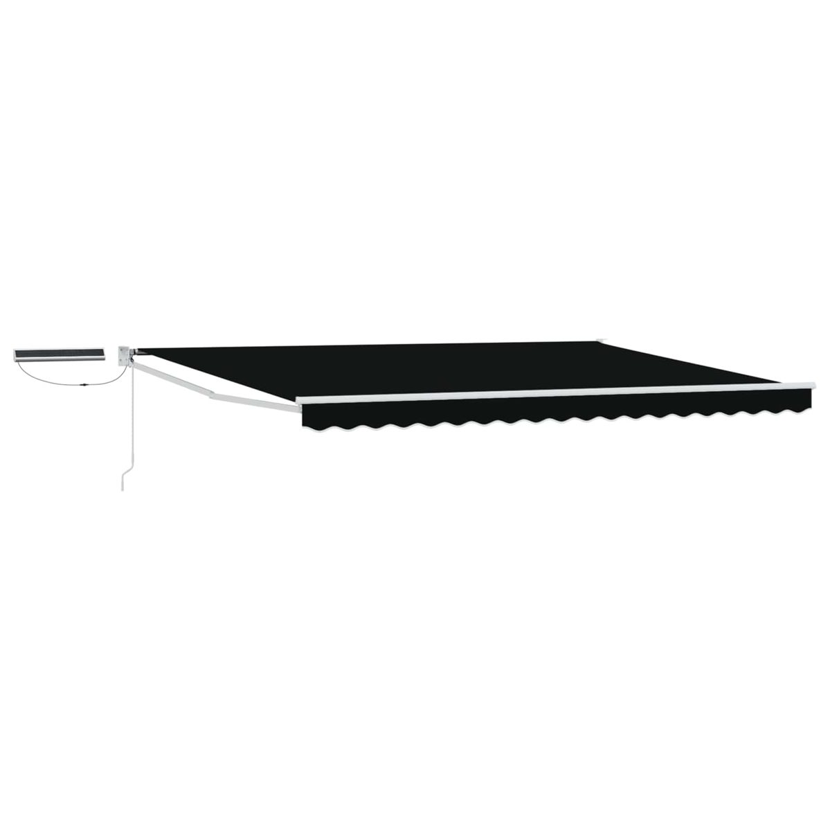 Diese elektrische Markise ist eine moderne Lösung für deinen Außenbereich. Sie kombiniert einfache Handhabung mit Stil und passt perfekt in jede Umgebung. Sie schützt dich vor Sonnenstrahlen und sieht dabei klasse aus, perfekt für alle, die es einfach mögen. Aluminium-Gestell: Die Markise hat eine Aluminiumstruktur, die stark und langlebig ist. Das schlanke Design sieht modern aus und verbindet Ästhetik mit Pragmatik. Sie ist perfekt für draußen und hält lange, ohne viel Pflege zu brauchen. Komponenteneigenschaften: Mit Solarpanels und einer Fernbedienung ist diese Markise super praktisch. Die Solarpanels nutzen Sonnenlicht und senken den Energieverbrauch. Für den Fall, dass die Fernbedienung mal fehlt, gibt es einen Kurbelgriff, mit dem du sie manuell bedienen kannst. Funktionales Design: Diese Markise hat einen schlichten Stil mit klaren Linien und wenig Schnickschnack. So passt sie in viele Außenbereiche. Sie spendet Schatten, hält die Hitze drinnen niedrig und macht es an sonnigen Tagen bequem und angenehm. Empfohlene Nutzung: Ideal für Terrassen, Pools und Outdoor-Events, schafft die Markise ein schattiges Fleckchen zum Entspannen. Ihre robuste Bauweise macht sie zum perfekten Begleiter für die häufige Nutzung, ideal für alle, die Funktionalität und Stil suchen. Pflege: Damit sie gut aussieht, wasch den Stoff einfach mit einem feuchten Tuch und milder Seife. Finger weg von scharfen Chemikalien! Regelmäßige Checks des Solarpanels sind empfohlen, um sicherzustellen, dass alles top funktioniert. ** Farbe: Schwarz ** Rahmenfarbe: Weiß ** Material: Polyester mit PU-Beschichtung ** Rahmenmaterial: Pulverbeschichteter Stahl, Aluminium ** Größe: 4 x 3 m ** Markisenstoffgröße: 3,8 x 2,95 m (L x B) ** Länge der Handkurbel: 165 cm ** Wetterbeständiger Stoff ** Korrosionsbeständiger Aluminiumrollo ** Robuste ausziehbare Arme ** Manuelle und elektrische Bedienung ** Montagezubehör enthalten ** Mit Solarladegerät ** Nur für den Außenbereich ** Montage Erforderlich: Ja ** Lieferumfang: ** 1 x Elektrisches ausziehbares Markise mit Solarpanel und Fernbedienung