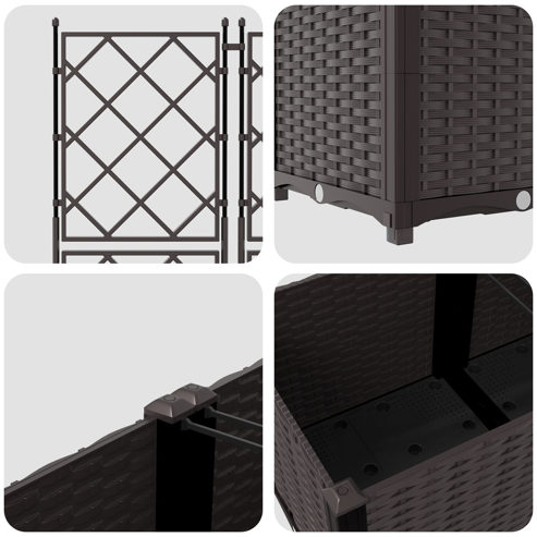 Schau dir diesen modernen Gartenpflanzer mit Spalier an! Er steigert die Funktionalität und die Optik in jedem Außenbereich. Die schicke rechteckige Form bringt einen zeitgenössischen Touch, während die matte Oberfläche perfekt zur Einfachheit modernen Designs passt. Der Pflanzer ist ideal für jeden, der sein Zuhause aufpeppen möchte, und hebt deine hellen Pflanzen vor dem nicht reflektierenden Hintergrund hervor – ein echter Hingucker für Garten oder Terrasse. Robustes Material: Hergestellt aus hochwertigem Polypropylen, hält dieser Pflanzer Wind und Wetter stand. Er ist UV-beständig, damit deine Pflanzen auch bei Sonnenschein frisch bleiben. Perfekt für Outdoor-Liebhaber ist dieses Material für viele Saisons geeignet. Integriertes Spalier: Das Spalier gibt Kletterpflanzen Halt, maximiert den vertikalen Platz und peppt deinen Garten auf. Egal ob bunte Reben oder natürliche Schönheiten, das Spalier verbindet Eleganz mit Funktionalität und inspiriert zu kreativen Gestaltungsmöglichkeiten. Einfache Montage: Der Zusammenbau ist super einfach und braucht nur einen Schraubendreher und einen Freund. So kannst du deine Dekoideen flott umsetzen und deinem Garten neues Leben einhauchen. Einfache Anleitungen helfen dir, mehr Zeit im schönen Garten zu verbringen. Funktioneller Style: Mit seinem rechteckigen Design passt er perfekt in moderne Räume und fügt sich hervorragend in zeitgenössische Geschmäcker ein. Er wurde für den Außenbereich konzipiert und bringt eine subtile Eleganz mit klaren Linien und schlichter Deko, die deine Pflanzen noch mehr zur Geltung bringt. Wenig Pflegeaufwand: Das Teil ist ganz leicht sauber zu halten – ein feuchter Lappen reicht! Mit diesem pflegeleichten Design hast du mehr Zeit, deinen Garten zu genießen, ohne viel Aufwand. ** Farbe: Braun ** Material: Pp ** Gesamtabmessungen: 80 x 80 x 143 cm (L x B x H) ** Versammlung erforderlich: Ja