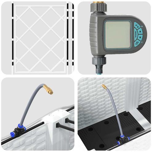 Dieser Gartenpflanzer mit Bewässerung ist eine moderne Lösung, die für Outdoor-Enthusiasten entwickelt wurde. Seine schlanke rechteckige Form, kombiniert mit einem strukturierten Geflechtmuster, verleiht deinem Garten oder Terrassenbereich einen zeitgenössischen Touch. Ideal für das Pflanzen einer Vielzahl von Flora, bietet dieser Pflanzer eine solide, ästhetisch ansprechende Grundlage für deine gärtnerischen Ambitionen. Er fügt sich nahtlos in jede Garten-Dekoration ein und bietet eine funktionale, aber stilvolle Option für Hobbygärtner. Der Pflanzer ist perfekt für alle, die ihren Außenbereich mit üppigem Grün bereichern wollen, unterstützt durch ein innovatives Bewässerungssystem, das ein gesundes Pflanzenwachstum fördert. Sein erhöhtes Design verleiht eine anspruchsvolle Note und sorgt gleichzeitig für praktische Verwendung, was dieses Stück zu einer unverzichtbaren Ergänzung für Gartenliebhaber macht. Materialkonstruktion: Der Gartenpflanzer besteht aus UV-beständigem Stahl, der Haltbarkeit und Widerstandsfähigkeit gegen Wetterveränderungen gewährleistet. Diese Materialwahl bietet robusten Schutz, der starkem Sonnenlichteinfluss und saisonalen Veränderungen angemessen widersteht, sodass deine Pflanzen das ganze Jahr über ohne Kompromisse beim strukturellen Integrität gedeihen. Eingebautes Bewässerungssystem: Ausgestattet mit einem fortschrittlichen Bewässerungssystem, nimmt dieser Gartenpflanzer das Rätselraten beim Gießen. Durch das nutzen von eingebauten Kanälen verteilt er Wasser effizient direkt zu den Pflanzenwurzeln, sodass diese ausreichende Feuchtigkeit erhalten, während der Wasserverbrauch reduziert wird und gesünderes Wachstum gefördert wird. Modernes Design: Mit einem schicken Geflechtmuster zeigt dieser Pflanzer elegante Einfachheit, die mit der modernen Ästhetik übereinstimmt. Seine nicht reflektierende matte Oberfläche verleiht einen verfeinerten Touch, sodass er sich nahtlos in verschiedene Außenbereiche integriert, während er mit seinen klaren, unaufdringlichen Linien den zeitgenössischen Stil verkörpert. Vielseitige Nutzung: Ideal für den Außeneinsatz, dient dieser Pflanzer sowohl dekorativen als auch praktischen Zwecken. Sein geräumiges Inneres bietet Platz für eine Vielzahl von Pflanzenarten, von üppigen Farnen bis hin zu lebhaften Blumen, was ihn für saisonale Übergänge oder den ganzjährigen Gebrauch geeignet macht und ein optimales Pflanzerlebnis für Hobbyisten und erfahrene Gärtner bietet. Pflege & Wartung: Um sein makelloses Erscheinungsbild zu bewahren, stelle diesen Pflanzer an einen stabilen Ort und vermeide direkte Sonneneinstrahlung über längere Zeiträume. Reinige regelmäßig mit einem trockenen Tuch und achte darauf, dass die Verbindungen während der Montage gesichert sind, um Stabilität und ästhetischen Wert über die Zeit zu gewährleisten. ** Farbe: Weiß ** Material: Stahl ** Gesamtabmessungen: 120 x 120 x 142 cm (L x B x H) ** Versammlung erforderlich: Ja Dieses Produkt darf in der Europäischen Union nicht zusammen mit anderem Hausmüll entsorgt werden. Aufgrund von Verunreinigungen im Leitungswasser befinden sich in den Anschlussteilen Edelstahlfilter, die rechtzeitig gereinigt werden müssen, um Verstopfungen zu vermeiden. Dieses Produkt ist kein Frostschutzmittel, unter 1℃ bitte entfernen und nehmen Sie den Raum zurück, das interne Wasser wird gegossen, um gute Gefrierbruch zu speichern ist nicht im Rahmen der Garantie.