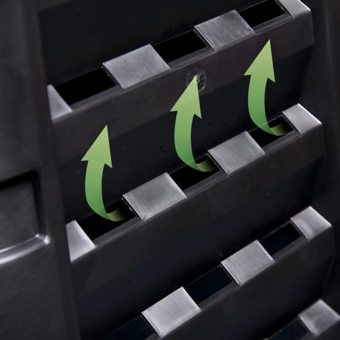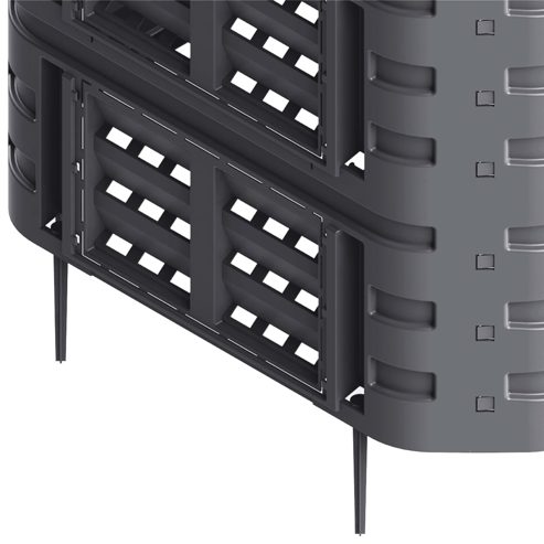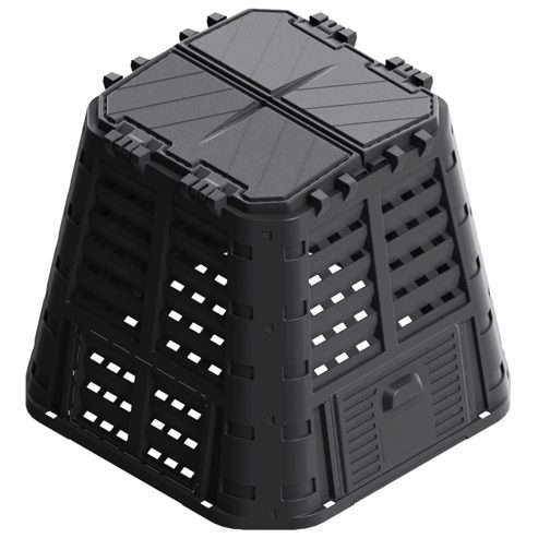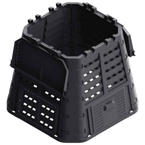 Dieser witterungsbeständige Thermokomposter hilft, die Zersetzung organischer Stoffe zu beschleunigen und selbst Dünger zuzubereiten. Der Abfall-Konverter ist sowohl für Garten- als auch für Küchenabfälle geeignet. Eine hohe Wärmeentwicklung innerhalb des Kompostbehälters fördert eine schnellere bakterielle Zersetzung und erzeugt einen besseren Humus. Der kompakte Gartenkomposter nimmt wenig Platz ein, bietet aber viel Volumen. Der Deckel erleichtert das Befüllen von oben während die Klappöffnung für eine einfache Entfernung des Humus sorgt. Das Tropfbewässerungssystem, das Vorhängeschlossloch, die robusten seitlichen Verriegelungen, die starken Scharniere, der bequeme Griff und die großen Schiebetüre gewährleisten eine benutzerfreundliche Verwendung. ** Farbe: Schwarz ** Material: Kunststoff ** Abmessungen: 933 x 933 x 800 mm (L x B x H) ** Fassungsvermögen: 480 L ** Vorhängeschlossloch ** Seitenriegel ** Lukenscharniere ** Griff ** Schiebetüre mit Haltern ** Tropfbewässerungssystem ** Zusammenbau erforderlich: Ja