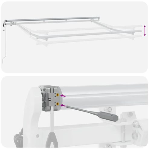 Dieser moderne, einziehbare Markisenrahmen ist einfach zu handhaben und praktisch, eine tolle Ergänzung für jeden Garten oder jede Terrasse. Mit klaren Linien und minimalem Aufwand ist er eine stabile Lösung, die über deinen Außenbereich hinausgeht und dir schönen Schatten mit einem stylishen Touch gibt. Die Markise aus starkem Metall sieht nicht nur schick aus, sondern ist auch unglaublich nützlich und bietet Schutz für sonnige Nachmittage oder warme Abende. Mit einem easy-zu-handhabenden Design macht diese Markise dein Outdoor-Erlebnis besser, indem sie dir einen kühlen Platz im Sommer bietet und gleichzeitig deinem Außenbereich Eleganz verleiht. Materialien: Aus robustem Metall gemacht, ist dieser Markisenrahmen langlebig und perfekt für aktive Außenbereiche. Er ist stark, hat aber trotzdem einen schicken Look, egal welches Wetter herrscht. Das Metalldesign gibt deinem Garten oder deiner Terrasse eine moderne Note und kombiniert Nützlichkeit mit stylischem Flair. Einziehbare Funktion: Unsere Markise ist so konzipiert, dass sie easy zu bedienen ist, mit einer einziehbaren Funktion, die dir erlaubt, den Schatten nach Wunsch zu regulieren. Ziehe sie einfach heraus oder rein, um das gewünschte Maß an Abdeckung zu bekommen. Dieses flexible Design sorgt dafür, dass du draußen einen kühlen Kopf bewahren kannst, egal was das Wetter bringt. Kompatibilität im Freien: Perfekt für Außenbereiche, fügt sich dieser Rahmen nahtlos in Gärten und Terrassen ein. Egal, ob du im Sommer eine Party schmeißt oder einfach nur entspannt chillst, er verwandelt offene Räume in gemütliche, schattige Plätze. Er bringt Atmosphäre und Stil in jeden Außenbereich und passt super in deinen Garten. Einfache Wartung: Die Pflege ist kinderleicht; achte einfach darauf, dass der Markisenrahmen sauber und trocken ist, bevor du ihn einpackst. Er ist für den Sommer gedacht, die Wartung ist unkompliziert, sodass du mehr Zeit hast, deinen Außenbereich zu genießen. Vielseitige Montage: Der Zusammenbau des Teils ist ein Kinderspiel, wenn du die richtigen Werkzeuge – Hammer, Maßband, Bohrmaschine, Schraubendreher und Schraubenschlüssel – hast, um dafür zu sorgen, dass alles gut stabil ist. Das ist ein spaßiges Projekt für dich und deine Freunde und leicht machbar, wenn ihr gemeinsam anpackt. ** Farbe: Weiß ** Material: Metall ** Gesamtabmessungen: 3 x 2 m (L x B) ** Gewicht: 17.5 kg ** Innen- / außenbereich: Nur für draußen ** Lieferung: ** 1 x ausziehbarer Markisenrahmen ** Anzahl der elemente: 1 ** Versammlung erforderlich: Ja Achtung! Starke Feder beim Öffnen! Entfernen Sie dieses Seil NICHT, bevor alle Montageschritte (mit allen Schrauben fest angezogen) abgeschlossen sind und der Gegenstand sicher an der Wand angebracht ist! Warnung! Vorsicht beim Lösen der Arme, da diese unter Spannung stehen! Ein plötzliches Lösen des Arms einer Gelenkarmmarkise kann zu Verletzungen führen. Warnung: Die Bedienungsanleitung muss vor der Verwendung des Produkts gelesen werden. Warnung: Der Betrieb unter frostigen Bedingungen kann das Produkt beschädigen. Verwendung im Außenbereich (an Gebäuden und bei Bauarbeiten). Erlaube Kindern nicht, mit der Steuerungsvorrichtung der Jalousie zu spielen. Halte die Fernbedienung von Kindern fern.