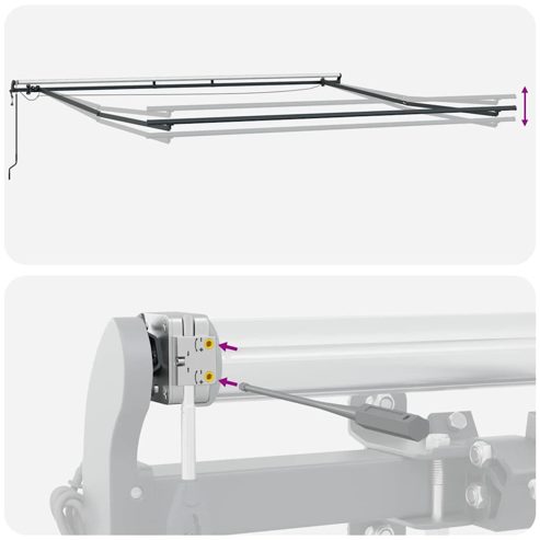 Diese einziehbare Markise ist alles andere als gewöhnlich. Ihr schlankes Design und das coole Streifenmuster machen deinen Balkon zu einem echten Hingucker, während sie an sonnigen Tagen für den perfekten schattigen Platz sorgt. Die Markise wurde outdoor-tauglich gemacht, damit du auf deinem Balkon relaxen kannst, ohne von der Sonne geblendet zu werden. Mit der Fernbedienung kannst du sie kinderleicht einstellen und so ein entspanntes Outdoor-Erlebnis genießen. Materialien: Diese Markise aus hochwertigem, UV- und wasserabweisendem Stoff trotzt allen Wetterbedingungen. Der Aluminiumrahmen sorgt für Stabilität und ein stylisches Aussehen, perfekt kombiniert aus Funktionalität und schickem Design. Sie hält also lange und funktioniert einwandfrei. Enthaltene Komponenten: Im Paket findest du eine Stoffmarkise, einen stabilen Rahmen und eine benutzerfreundliche Fernbedienung, damit du alles hast, was du für die Montage brauchst. Die Markise bietet reichlich Schutz, während der Rahmen sicherstellt, dass alles stabil bleibt. Mit der Fernbedienung lässt sich die Position der Markise ganz easy anpassen. Merkmale / Funktion / Design: Dank des einziehbaren Designs kannst du flexibel auf Veränderungen im Wetter reagieren. Mit der motorisierten Technik lässt sie sich einfach per Fernbedienung bedienen. Ihr modernes Erscheinungsbild passt zu vielen Wohnstilen und ist eine super Wahl für verschiedene Außenbereiche. Empfohlene Nutzung: Diese einziehbare Markise ist ideal für Balkone in Wohnhäusern, Hotels und Wohnungen – perfekt für den persönlichen Gebrauch oder für Versammlungen. Sie schafft schattige Plätze, die dein Outdoor-Vergnügen an warmen Tagen steigern. Das Design passt super zu unterschiedlichen Außenwohn-Anordnungen. Pflege & Wartung: Damit deine Markise immer gut aussieht und funktioniert, ist es ganz einfach. Wische den Stoff gelegentlich mit einem feuchten Tuch ab, um Staub zu entfernen. Diese einfache Pflege sorgt dafür, dass die Markise lange hält und immer top funktioniert und gut aussieht. ** Farbe: Weiß ** Material: Stoff ** Gesamtabmessungen: 400 x 350 cm (L x B) ** Einziehbar ** Betriebsmechanismus: Fernbedienung ** Versammlung erforderlich: Ja ** Lieferung: ** 1 x Markisenstoff, 1 x Markisenrahmen, 1 x Fernbedienung Achtung! Starke Feder beim Öffnen! Entfernen Sie dieses Seil NICHT, bevor alle Montageschritte (mit allen Schrauben fest angezogen) abgeschlossen sind und der Gegenstand sicher an der Wand angebracht ist! Warnung! Vorsicht beim Lösen der Arme, da diese unter Spannung stehen! Ein plötzliches Lösen des Arms einer Gelenkarmmarkise kann zu Verletzungen führen. Warnung: Die Bedienungsanleitung muss vor der Verwendung des Produkts gelesen werden. Warnung: Der Betrieb unter frostigen Bedingungen kann das Produkt beschädigen. Verwendung im Außenbereich (an Gebäuden und bei Bauarbeiten). Erlaube Kindern nicht, mit der Steuerungsvorrichtung der Jalousie zu spielen. Halte die Fernbedienung von Kindern fern.