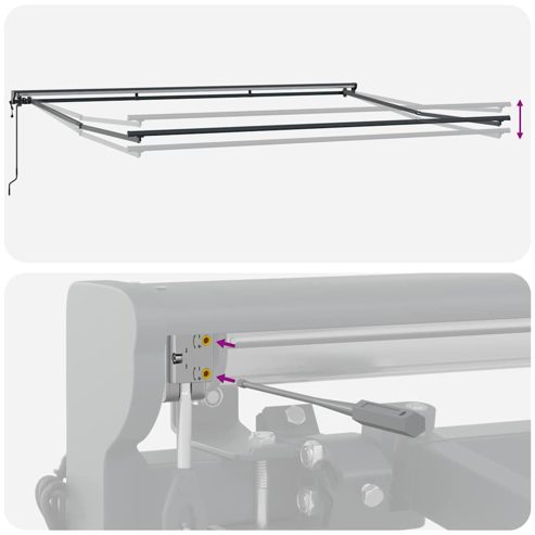 Die einziehbare Sonnenblende gibt deinem Balkon einen stylishen Touch. Mit ihrem modernen Design passt sie super zu verschiedenen Outdoor-Stilen und sorgt gleichzeitig für anpassbaren Schatten, damit du an sonnigen Tagen bequem bleibst. Ihre rechteckige Form und die glatte Oberfläche schaffen einen einladenden Ort, perfekt zum Entspannen oder für Treffen. Diese Sonnenblende ist ideal für alle, die sowohl Stil als auch praktische Lösungen im Freien suchen und schafft eine schicke Atmosphäre, während sie dich vor der grellen Sonne schützt. UV-beständiger Stoff: Diese einziehbare Markise besteht aus hochwertigem Material, das erstklassigen UV-Schutz bietet und dich und deine Liebsten vor schädlichen Strahlen schützt, während ihr die Natur genießt. Perfekt für sonnige Balkone hilft sie, die Farbe der Markise über Jahre zu erhalten, mit minimaler Wartung. Wasserabweisende Oberfläche: Mit einer wasserabweisenden Schicht wehrt diese Markise effektiv Wasser ab und ist perfekt für unerwartete Regenschauer. Das Regenwasser läuft schnell ab, sodass der Bereich darunter trocken und bequem bleibt. Ideal für deine Outdoor-Events, egal bei welchem Wetter. Moderne Stilrichtung: Das Design dieser Markise mit klaren Linien und stylishen Look passt perfekt zu aktuellen Einrichtungstrends. Sie fügt sich nahtlos in verschiedene Outdoor-Stile ein und lässt deinen Balkon schick und einladend wirken. Manuelles Einzugs-System: Die Markise hat einen nutzerfreundlichen, handbetriebenen Mechanismus, mit dem du den Winkel und den Auszugsgrad ganz einfach verstellen kannst. Diese praktische Funktion gibt dir die Freiheit, deinen Schatten nach Wunsch anzupassen, ohne Strom zu brauchen, was sie für jede Gelegenheit super praktisch macht. Einfache Pflege: Halte deine Markise in Schuss – einfach mit kaltem Wasser reinigen und auf aggressive Chemikalien verzichten. Regelmäßiges Überprüfen und Anziehen der Schrauben sorgt für Stabilität. Diese Tipps sind einfach und helfen, die Markise langlebig zu halten, was sie zu einer tollen langfristigen Investition für deinen Außenbereich macht. ** Farbe: Anthrazit und weiß ** Material: Stoff ** Gesamtabmessungen: 450 x 300 cm (L x B) ** Einziehbar ** Wasserfeste Materialien ** Montagetyp: Wandhalterung ** Betriebsmechanismus: Manuell ** Versammlung erforderlich: Ja ** Lieferung: ** 1 x ausziehbare Markise Achtung! Starke Feder beim Öffnen! Entfernen Sie dieses Seil NICHT, bevor alle Montageschritte (mit allen Schrauben fest angezogen) abgeschlossen sind und der Gegenstand sicher an der Wand angebracht ist! Warnung! Vorsicht beim Lösen der Arme, da diese unter Spannung stehen! Ein plötzliches Lösen des Arms einer Gelenkarmmarkise kann zu Verletzungen führen. Warnung: Die Bedienungsanleitung muss vor der Verwendung des Produkts gelesen werden. Warnung: Der Betrieb unter frostigen Bedingungen kann das Produkt beschädigen. Verwendung im Außenbereich (an Gebäuden und bei Bauarbeiten). Erlaube Kindern nicht, mit der Steuerungsvorrichtung der Jalousie zu spielen. Halte die Fernbedienung von Kindern fern.