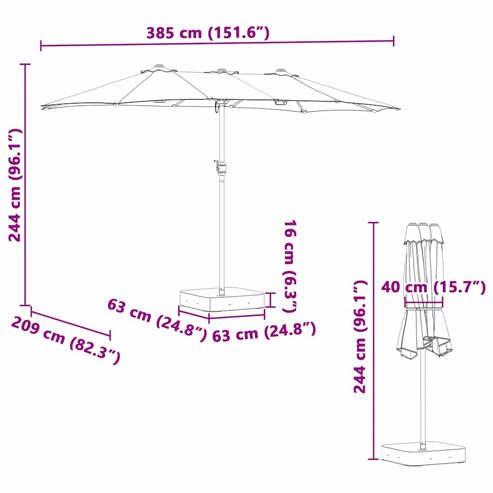vidaXL Gartenparasol Schwarz 385 x 209 x 244 cm Stoff