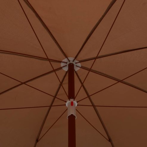 Dieser elegante Sonnenschirm bietet Schutz vor den schädlichen Strahlen der Sonne und spendet gleichzeitig angenehmen Schatten. Es besteht aus UV-beständigem und farbechtem Polyester. Der Balkonschirm bietet optimalen Schutz vor der Sonne und ist leicht zu reinigen. Der robuste Stahlmast mit holzfarbener Beschichtung und die 8 Streben machen den Strandschirm stabil und langlebig. Achtung: Wir empfehlen, den Schirmbezug mit einem Imprägnierspray zu behandeln, wenn der Schirm starkem Regen ausgesetzt wird. ** Farbe: Taupe ** Material: Stoff (100% Polyester), Stahl ** Abmessungen: 255 x 280 cm (Durchmesser x H) ** Bogenlänge: 300 cm ** Mastdurchmesser: 32 mm ** UV-beständig und wasserabweisend