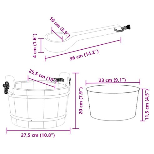 vidaXL Sauna-Eimer 2 pcs Braun Massives Kiefernholz und Hanf