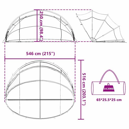 vidaXL Pool-Dome Transparent 546 x 516 x 250 cm PVC
