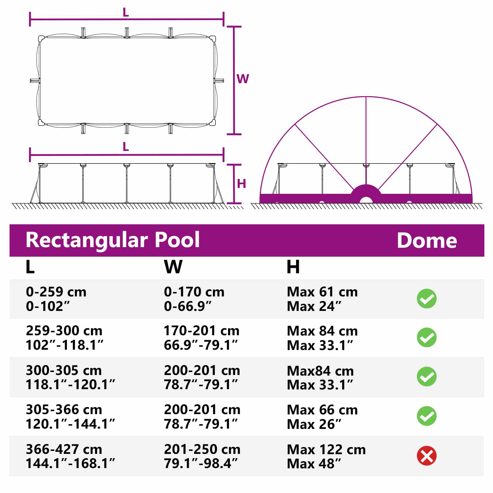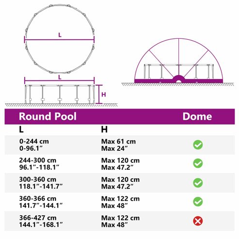 Dieser praktische faltbare Pool-Dom ist der perfekte Begleiter für deine Pool-Sessions im Freien und bringt sowohl Schutz als auch Komfort. Ideal für moderne Gärten, hat der Dome ein elegantes, minimalistisches Design, das sich gut in jede Umgebung einfügt. Seine glatte Oberfläche macht ihn einladend und sorgt für eine stressfreie Poolumgebung. Mit seinen cleveren Faltfähigkeiten ist er ein absolutes Must-Have für die Pflege und den Schutz deines Pools, was ihn noch attraktiver macht. Robuste Materialien: Aus UV-beständigem Glasfaser und wasserfesten Technologien – dieser Dome schützt deinen Pool vor Sonnenstrahlen und schlechtem Wetter. Seine starke Bauweise sorgt dafür, dass er lange hält und dein Poolbereich immer sauber bleibt, mit minimalem Aufwand. Umfassende Komponenten: Der Pool-Dome kommt mit allem, was du brauchst: einem kompletten Set flexibler Glasfaserstangen, einer praktischen Tragetasche und stabilen Abspannleinen. So bist du bestens gerüstet für eine einfache Montage und extra Sicherheit bei Wind. Funktionale Merkmale: Einfach zusammenfalten und entfalten! Das geht ganz unkompliziert ohne Maschinen. So kannst du den Wärmeverlust zwischen den Nutzungen vermindern und die Energieeffizienz steigern. Saisonale Vielseitigkeit: Perfekt für den Sommer und beim Camping – dieser Dome passt super in Gärten und auf Terrassen und fügt sich problemlos in verschiedene Umgebungen ein. Er lässt sich kompakt lagern und ist ideal für Abenteuer und Entspannung. Wartungsfrei: Speziell für den Outdoor-Gebrauch gemacht, braucht dieser Pool-Dome fast keine Wartung. Einfach vermeiden, ihn bei starkem Wind oder Regen zu nutzen, damit er in gutem Zustand bleibt für viele schöne Tage und sorgloses Vergnügen. ** Farbe: Grün ** Material: 185T Polyester mit PU-Beschichtung ** Gesamtabmessungen: 430 x 430 x 210 cm (L x B x H) ** Gewicht: 11,35 kg ** Faltbar ** Wasserfeste Materialien ** UV-beständige Materialien ** Blockiert Blätter und Schmutz ** Einfach zu öffnen und zu schließen ** Reduziert Wärmeverlust ** Schneller Abbau für kompakte Lagerung ** Abspannleinen für zusätzliche Festigkeit ** Erdanker für zusätzliche Stabilität ** Tragetasche für einfachen Transport ** Flexible Fiberglasstangen ** Innen- / Außenbereich: Nur für den Außenbereich ** Lieferumfang: ** 1 x Zehn ** 1 x Set von Stangen ** 8 x Abspannleine ** 12 x Erdnagel ** 1 x Tragetasche ** Montage erforderlich: Ja Achtung Halten Sie alle Flammen und Wärmequellen von diesem Produktgewebe fern.
