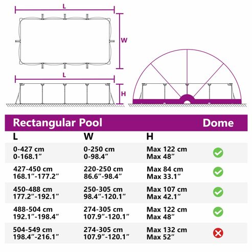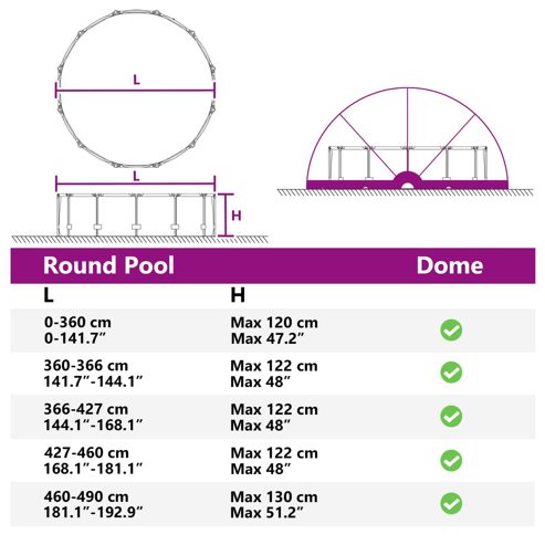 Dieser praktische faltbare Pool-Dom ist der perfekte Begleiter für deine Pool-Sessions im Freien und bringt sowohl Schutz als auch Komfort. Ideal für moderne Gärten, hat der Dome ein elegantes, minimalistisches Design, das sich gut in jede Umgebung einfügt. Seine glatte Oberfläche macht ihn einladend und sorgt für eine stressfreie Poolumgebung. Mit seinen cleveren Faltfähigkeiten ist er ein absolutes Must-Have für die Pflege und den Schutz deines Pools, was ihn noch attraktiver macht. Robuste Materialien: Aus UV-beständigem Glasfaser und wasserfesten Technologien – dieser Dome schützt deinen Pool vor Sonnenstrahlen und schlechtem Wetter. Seine starke Bauweise sorgt dafür, dass er lange hält und dein Poolbereich immer sauber bleibt, mit minimalem Aufwand. Umfassende Komponenten: Der Pool-Dome kommt mit allem, was du brauchst: einem kompletten Set flexibler Glasfaserstangen, einer praktischen Tragetasche und stabilen Abspannleinen. So bist du bestens gerüstet für eine einfache Montage und extra Sicherheit bei Wind. Funktionale Merkmale: Einfach zusammenfalten und entfalten! Das geht ganz unkompliziert ohne Maschinen. So kannst du den Wärmeverlust zwischen den Nutzungen vermindern und die Energieeffizienz steigern. Saisonale Vielseitigkeit: Perfekt für den Sommer und beim Camping – dieser Dome passt super in Gärten und auf Terrassen und fügt sich problemlos in verschiedene Umgebungen ein. Er lässt sich kompakt lagern und ist ideal für Abenteuer und Entspannung. Wartungsfrei: Speziell für den Outdoor-Gebrauch gemacht, braucht dieser Pool-Dome fast keine Wartung. Einfach vermeiden, ihn bei starkem Wind oder Regen zu nutzen, damit er in gutem Zustand bleibt für viele schöne Tage und sorgloses Vergnügen. ** Farbe: Grün ** Material: 185T Polyester mit PU-Beschichtung ** Gesamtabmessungen: 592 x 590 x 275 cm (L x B x H) ** Gewicht: 24,6 kg ** Faltbar ** Wasserfeste Materialien ** UV-beständige Materialien ** Blockiert Blätter und Schmutz ** Einfach zu öffnen und zu schließen ** Reduziert Wärmeverlust ** Schneller Abbau für kompakte Lagerung ** Abspannleinen für zusätzliche Festigkeit ** Erdanker für zusätzliche Stabilität ** Tragetasche für einfachen Transport ** Flexible Fiberglasstangen ** Innen- / Außenbereich: Nur für den Außenbereich ** Lieferumfang: ** 1 x Zehn ** 1 x Set von Stangen ** 8 x Abspannleine ** 12 x Erdnagel ** 1 x Tragetasche ** Montage erforderlich: Ja Achtung Halten Sie alle Flammen und Wärmequellen von diesem Produktgewebe fern.