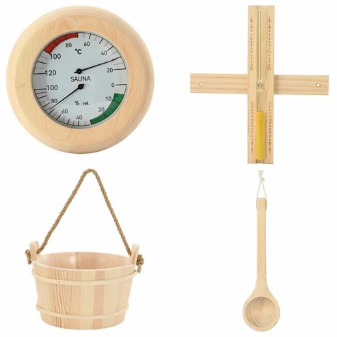 Dieses Sauna-Zubehör-Set ist ein Muss für alle, die den rustikalen Charme und das Natürliche in ihrem Entspannungsbereich lieben. Mit massiven Kiefernholz-Elementen und Hanf-Details hat dieses Set einen stabilen und gleichzeitig ansprechenden Look, der gut in jede Sauna passt. Egal ob drinnen oder draußen – es bietet alles, was du für entspannende Sauna-Sitzungen brauchst und bringt Ästhetik und Funktionalität zusammen. Materialzusammensetzung: Das Sauna-Zubehör-Set ist aus massivem Kiefernholz und Hanf gefertigt, was für ein wirklich authentisches Gefühl sorgt. Diese Mischung bringt nicht nur wohlige Wärme, sondern garantiert auch langlebige Qualität, speziell in den feuchten Bedingungen von Saunen, und macht dein Entspannungserlebnis noch besser. Komplettes Sauna-Zubehör-Set: Das Set enthält einen 4L Sauna-Eimer mit Hanfseilgriff, eine passende Schöpfkelle, ein 2-in-1 Thermo- und Hygrometer sowie eine 15-minütige Sanduhr. Jedes Teil sorgt für Funktionalität und behält dabei ein schönes, stimmiges Design. Mit dem Temperatur- und Feuchtigkeitsmesser kannst du die besten Sauna-Bedingungen aufrechterhalten. Merkmale und Design: Das rustikale Aussehen des Sets, das durch eine glatte Lackierung betont wird, bringt einen Hauch von natürlicher Schönheit in deine Sauna. Der warme Braunton der Materialien passt perfekt zu verschiedenen Sauna-Stilen und schafft eine entspannende Atmosphäre, in der du dem Alltag entfliehen kannst. Empfohlene Anwendungen: Ideal für private und gewerbliche Saunen, deckt dieses Zubehör-Set die Bedürfnisse von Spa-Besitzern und Sauna-Fans zu Hause ab, die ihr Dampfbad aufpeppen möchten. Es sorgt für mehr Funktionalität und optische Anziehungskraft und verbessert das Sauna-Erlebnis insgesamt. Pflegehinweise: Eine einfache Pflege besteht darin, starkes Reiben beim Saubermachen zu vermeiden und das Holz trocken zu halten, wenn es nicht verwendet wird. So verlängerst du die Lebensdauer des Produkts und erhältst seine ansprechende Optik. ** Farbe: Braun ** Material: Massives Kiefernholz und Hanf ** Gewicht: 1,6 kg ** Langlebig ** Innen- / Außenbereich: Für Innen- und Außenbereich ** Lieferumfang: ** 1 x 4 L Saunakübel: 27,5 x 25,5 x 20 cm (L x B x H) ** 1 x Schöpfkelle: 36 x 10 x 4 cm (L x B x H) ** 1 x 2-in-1 Thermo- und Hygrometer: φ13,5 x 3 cm (Durchmesser x H) ** 1 x 15-Min Sanduhr: 30 x 5 x 3,5 cm (L x B x H) ** Montage erforderlich: Ja