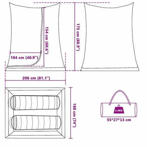 Dieses geniale Innenzelt ist sowohl praktisch als auch stylish für alle Camping-Fans. Das schicke, simple Design macht es perfekt für draußen und bietet dir einen atmungsaktiven Raum, der bei jedem Wetter top ist. Es hebt dein Campingerlebnis richtig an und das Aufbauen mit einem Kumpel ist im Handumdrehen erledigt. Netzmaterial: Hochwertiges Netz, das eine tolle Balance zwischen Leichtigkeit und Stabilität bietet, damit dein Campingplatz gemütlich bleibt. Das atmungsaktive Netz lässt die Luft zirkulieren und hält die unangenehmen Dinge draußen. Reißverschluss-Verschluss: Der stabile Reißverschluss macht die Nutzung einfach und sorgt dafür, dass du problemlos ein- und aussteigen kannst, selbst bei schlechtem Wetter oder Dunkelheit. Luftiges Design: Das halbdurchsichtige Design bietet die perfekte Mischung aus Privatsphäre und Offenheit. Es lässt natürliches Licht rein und sorgt für einen angenehmen Luftzug, sodass es drinnen behaglich bleibt. Pflegehinweise: Das Zelt sauber zu halten ist ein Kinderspiel; einfach nach dem Camping mit einem trockenen Tuch drüberwischen, um Staub oder Krümel zu entfernen. Diese pflegeleichte Funktion macht es zu einer praktischen Ergänzung deiner Camping-Ausrüstung. Einfacher Aufbau: Das Aufstellen ist wirklich unkompliziert; schnapp dir einen Kumpel und ihr werdet es ruckzuck aufstellen. So kannst du deine Zeit nutzen, um die Natur zu genießen, anstatt mit der Ausrüstung herumzupuzzeln. ** Farbe: Schwarz ** Material: Netz ** Gesamtabmessungen: 206 x 188 x 175 cm (L x B x H) ** Gewicht: 1.44 kg ** mit Tragetasche ** Innen- / außenbereich: Nur für draußen ** Lieferung: ** 1 x Mesh Innenzelt ** Anzahl der elemente: 1 ** Versammlung erforderlich: Ja Achtung Halten Sie alle Flammen und Wärmequellen von diesem Produktgewebe fern.