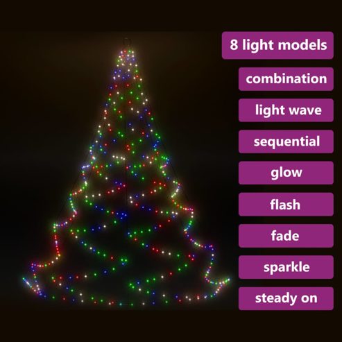vidaXL Weihnachtsbaum an der Wand mit Metallhaken 260 LED Bunt 3 m
