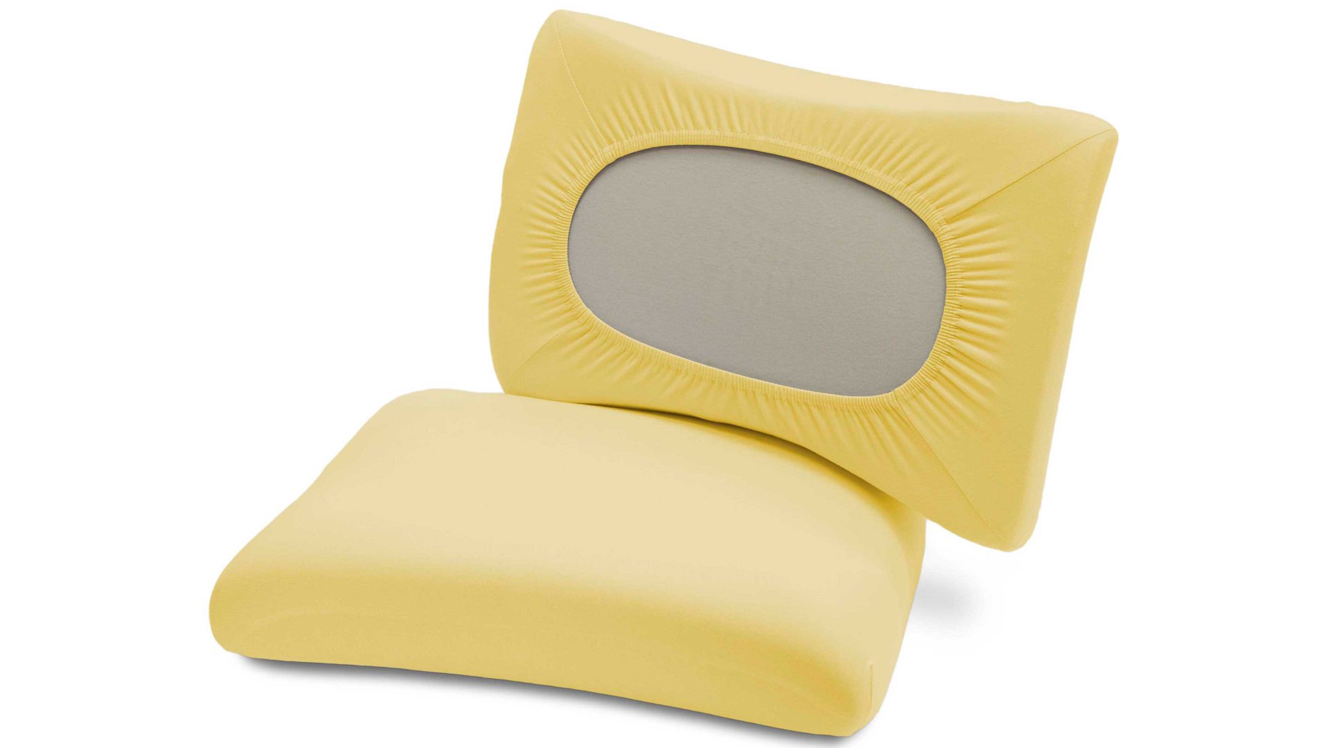 Der Kopfkissenbezug passt sich dank des Rundumgummibezugs und des hohen Elasthan-Anteils Ihrem Kissen perfekt an. Der Bezug hat Maße von ca. 80 x 40 cm (LxB) und besteht aus einem Baumwoll-Elasthan-Gemisch, das ein Waschen bei bis zu bei 60 Grad zulässt. Der Kissenbezug ist darüber hinaus trocknergeeignet. Den Gesundheitskissenbezug erhalten Sie auch in anderen Farben.