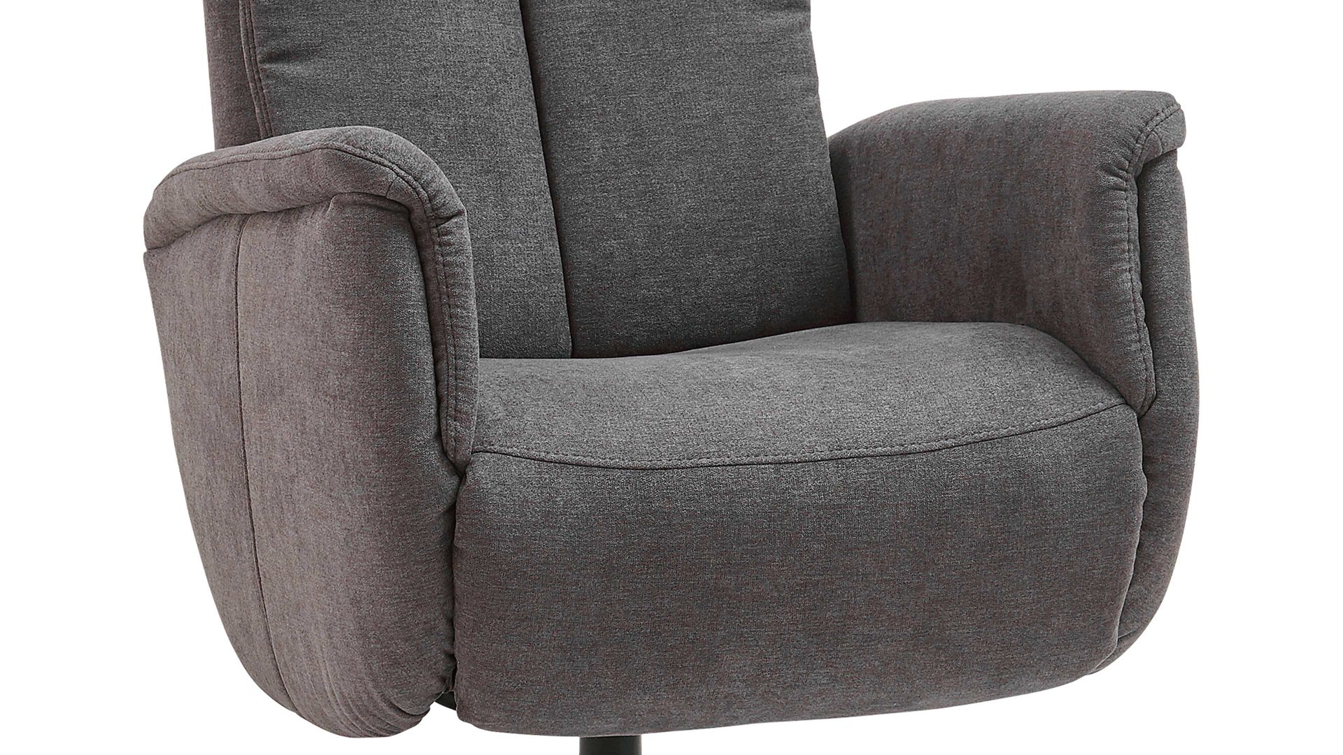 Zudem ist der Fernsehsessel 360 Grad drehbar und bietet manuelle Relaxfunktionen: Mittels Körperdruck wird die Rückenlehne gesenkt und der Sitz geht automatisch nach vorn und nach oben.