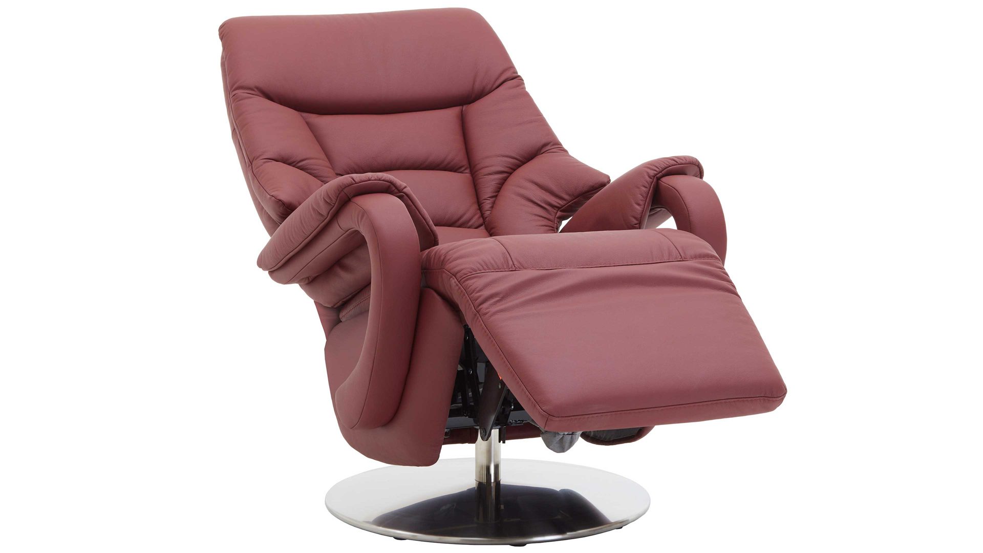 Dieser Relaxsessel kombiniert einen robusten glänzenden Edelstahl-Tellerfuß mit einem stilvollen merlotfarbenen LongLife-Lederbezug. Durch die top aufeinander abgestimmten Materialien und Farben strahlt der Fernsehsessel moderne Eleganz aus. Für die nötige Stabilität sorgt der Stahlrohrrahmen. Er macht den TV-Sessel bis 130 kg belastbar. Die Maße des hochwertig verarbeiteten Relaxsessels belaufen sich auf ca. 80 x 116 x 80 cm (BxHxT), bei einer Sitzhöhe von ca. 49 cm und einer Sitztiefe von ca. 55 cm.