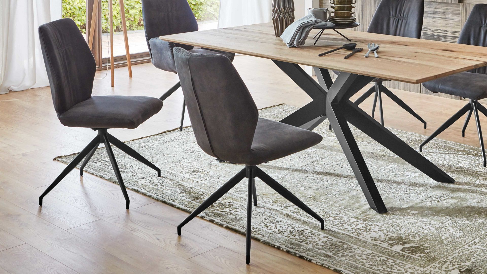 Auch praktisch weiß der komfortabel gepolsterte Esszimmerstuhl voll und ganz zu überzeugen: Er ist flexibel um 180 Grad drehbar. Durch die Rückholfunktion kehrt er einfach wieder in seine Ausgangsposition zurück.