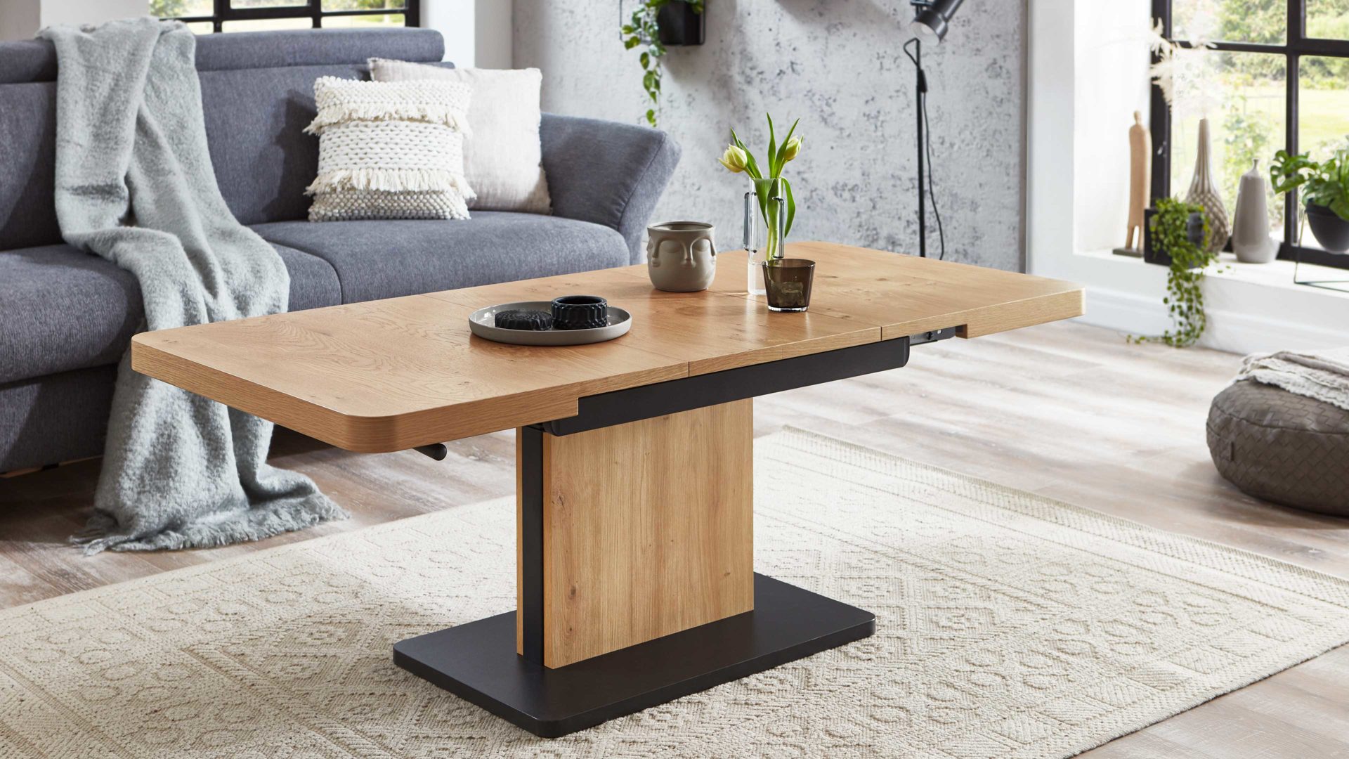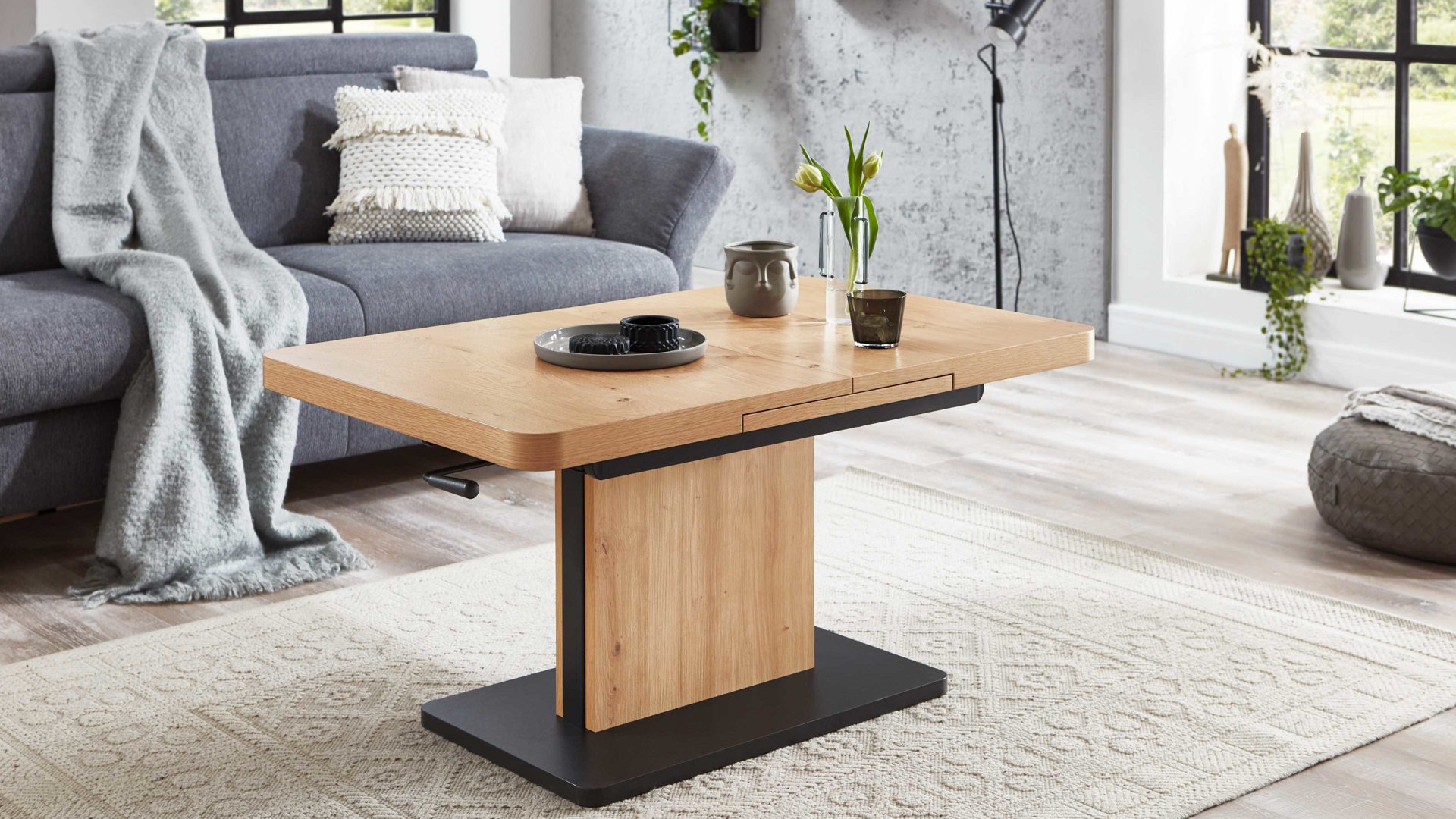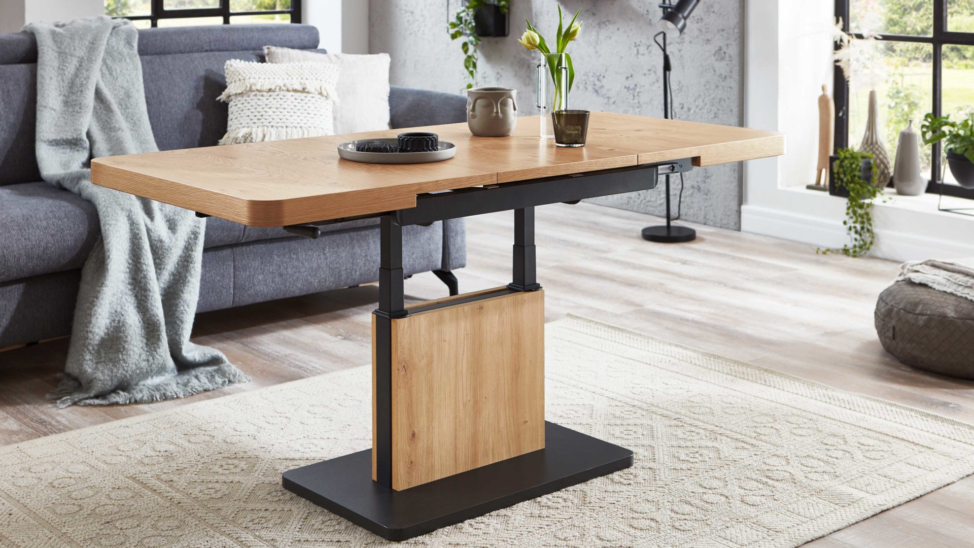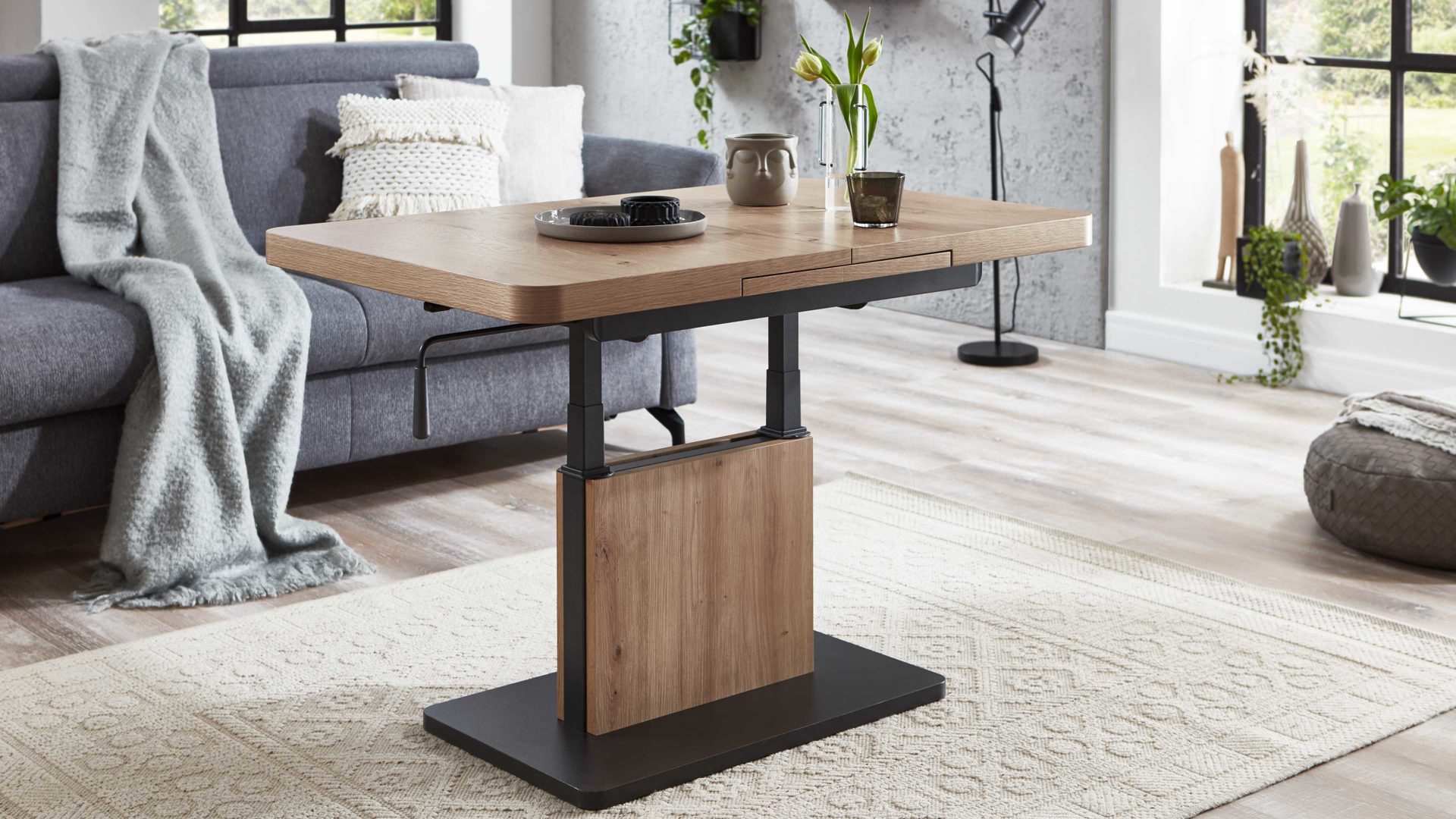 Die Maße des in allen Belangen überzeugenden Lift- und Auszug-Couchtisches belaufen sich auf ca. 110 x 55 - 74 x 70 cm (LxHxT). Er ist Made in Germany.