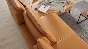 Die lederbezogene Liegefläche ist ein Mehrpreis für die Möbel mit Bettfunktion aus dem Modulmaster-Polsterprogramm MM-PN1126. Durch dieses Extra präsentiert sich die Liegefläche im Originalbezug des jeweiligen Sofas. Das kurkumafarben pigmentierte Glattleder präsentiert sich modern und elegant.