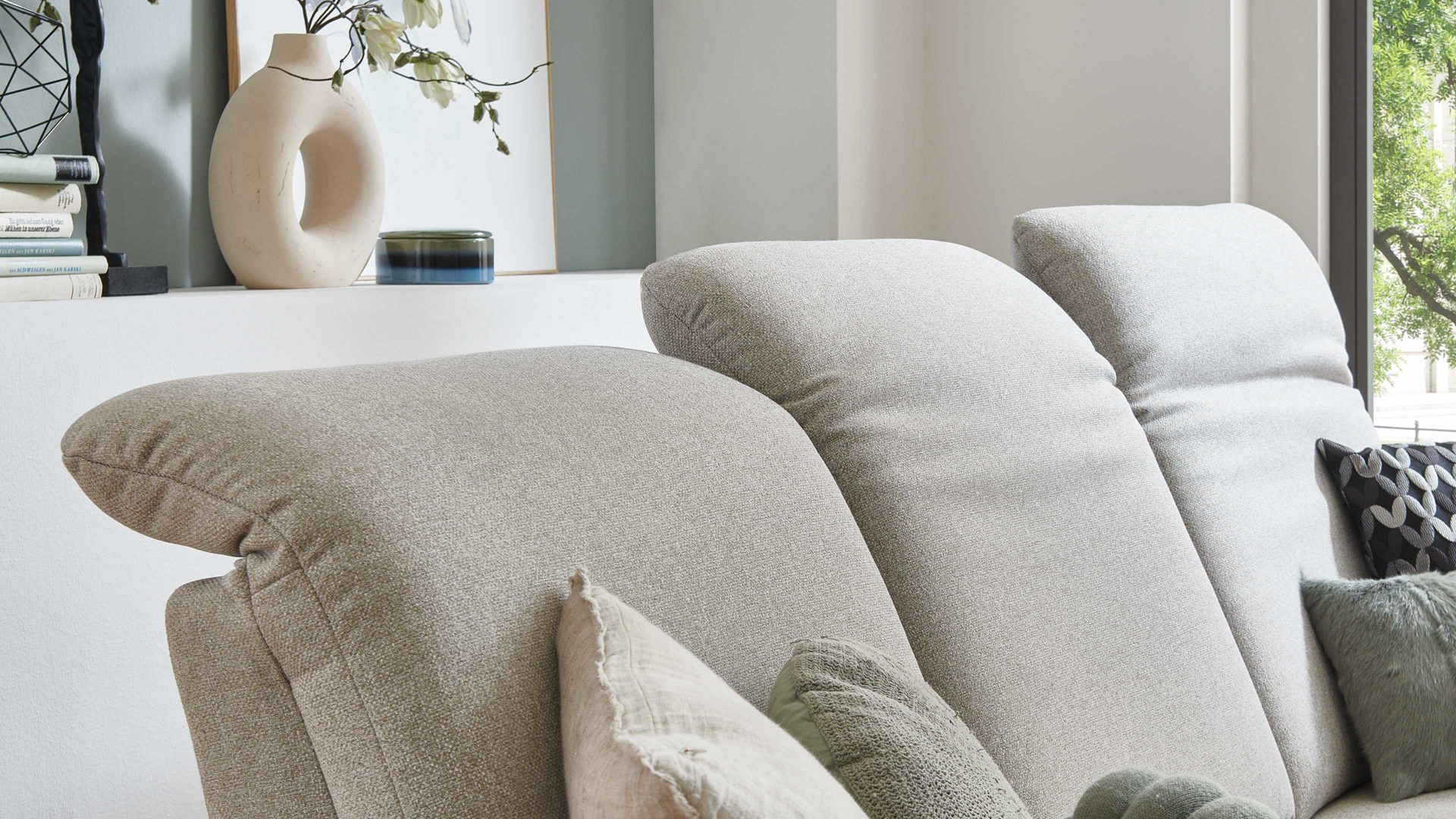 Geben Sie Ihrem Wohnzimmer mit der Kopfteilverstellung aus dem Polsterprogramm Tiamo Plus eine persönliche Note und genießen Sie maximalen Komfort und entspannte Stunden auf Ihrer Couch.