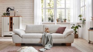 naturfarbener Cordbezug und biancofarbene Holzfüße