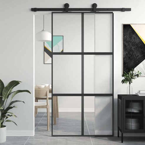 • vidaXL Schiebetür Schwarz 102,5x205 cm Hartglas und Aluminium