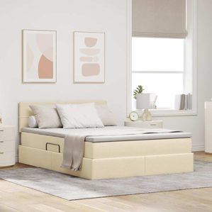 • vidaXL Aufbewahrungsbett mit Matratze Creme 140 x 190 cm Kunstleder