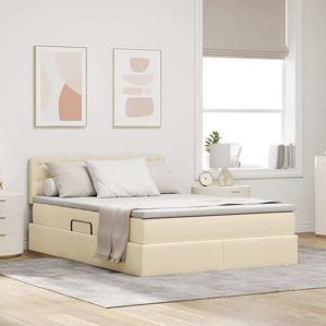 vidaXL Bett mit LED-Lichtleisten mit Kopfteil Creme 140 x 200 cm Stoff