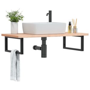 • vidaXL Waschbeckenregal Wandmontage Stahl und Massivholz Buche