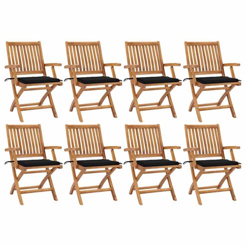• vidaXL Klappbare Gartenstühle mit Kissen 8 Stk. Massivholz Teak