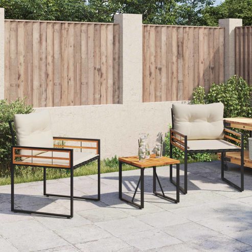 vidaXL Gartenmöbel Set mit Kissen 3 pcs Creme