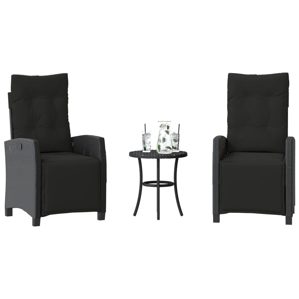 vidaXL 3-tlg. Bistro-Set mit Kissen Schwarz Poly Rattan