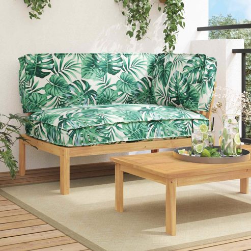 • vidaXL Sofa Set mit Kissen Blatt 2 pcs Blattmuster Massivholz Akazie