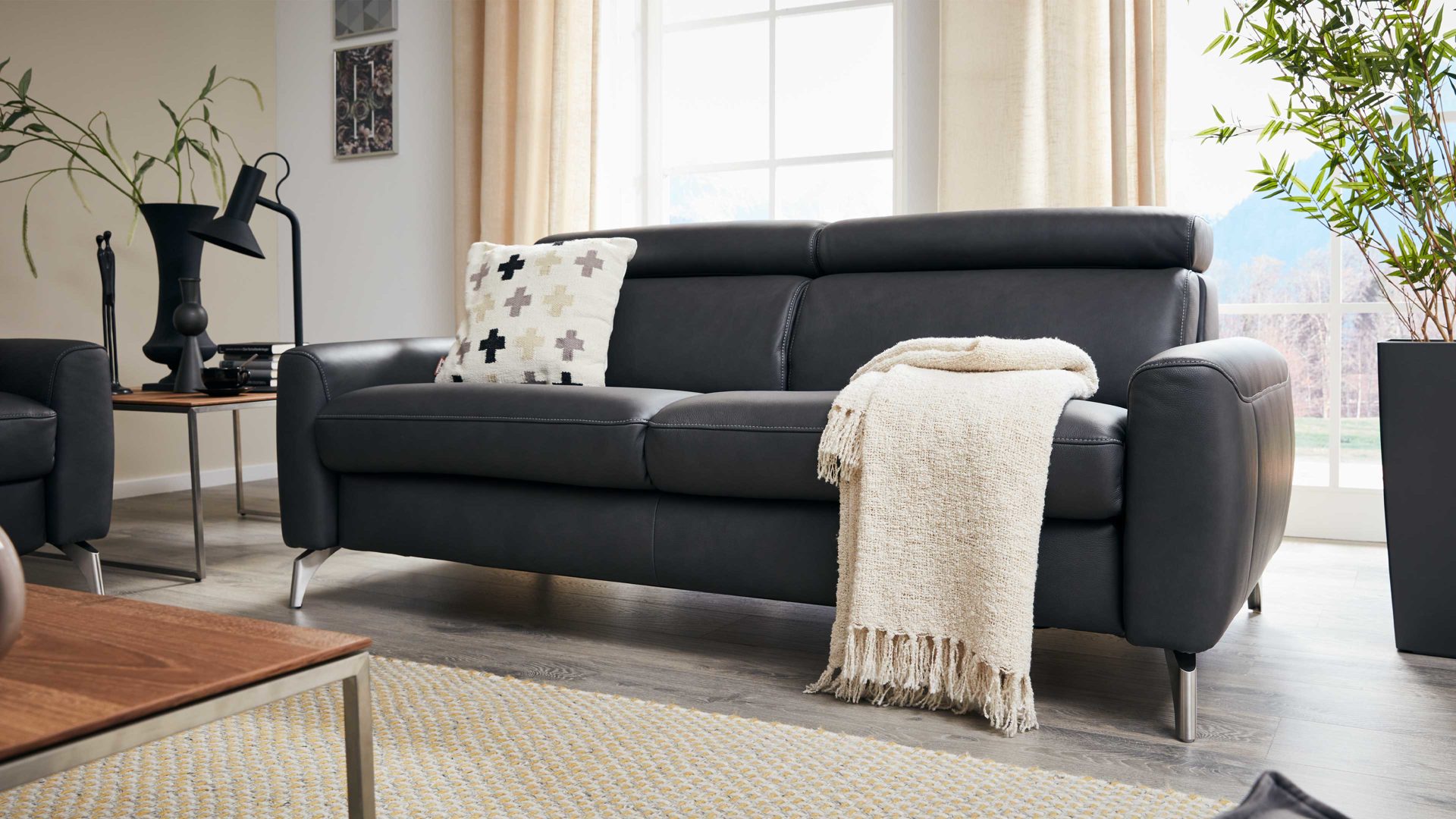klifffarbenes LongLife-Leder & anthrazitfarbener Sternfuß