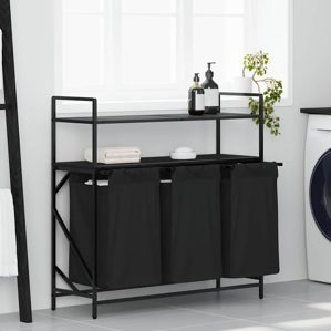 vidaXL Wäschekorb 3 Fächer mit Regalen Schwarze Eiche