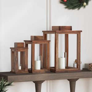 vidaXL Laterne 3 pcs Natur Mahagoni Holz