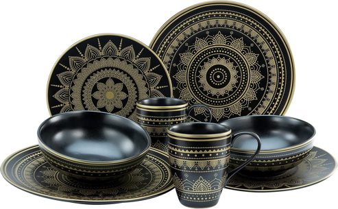 • CreaTable Mandala Gold – Modernes 16-teiliges Geschirrset