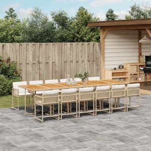 vidaXL 13-tlg. Garten-Essgruppe mit Kissen Beige Poly Rattan