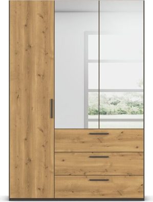 • Rauch Drehtürenschrank 3-türig, 2 Spiegeltüren, 3 Schubkästen Dekor Asteiche AW31C.01G0